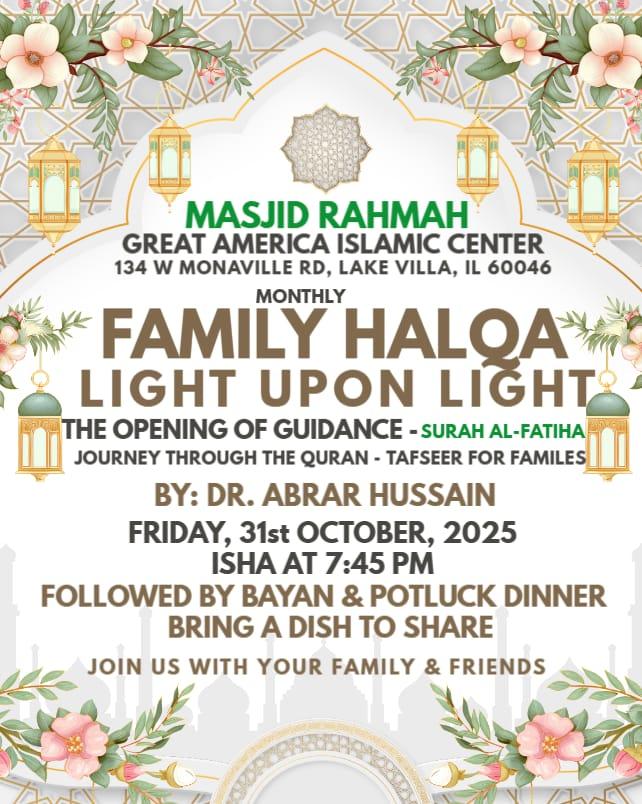Family Halqa Light Upon Light at Masjid Rahmah, on Friday, October 31st, 2025.